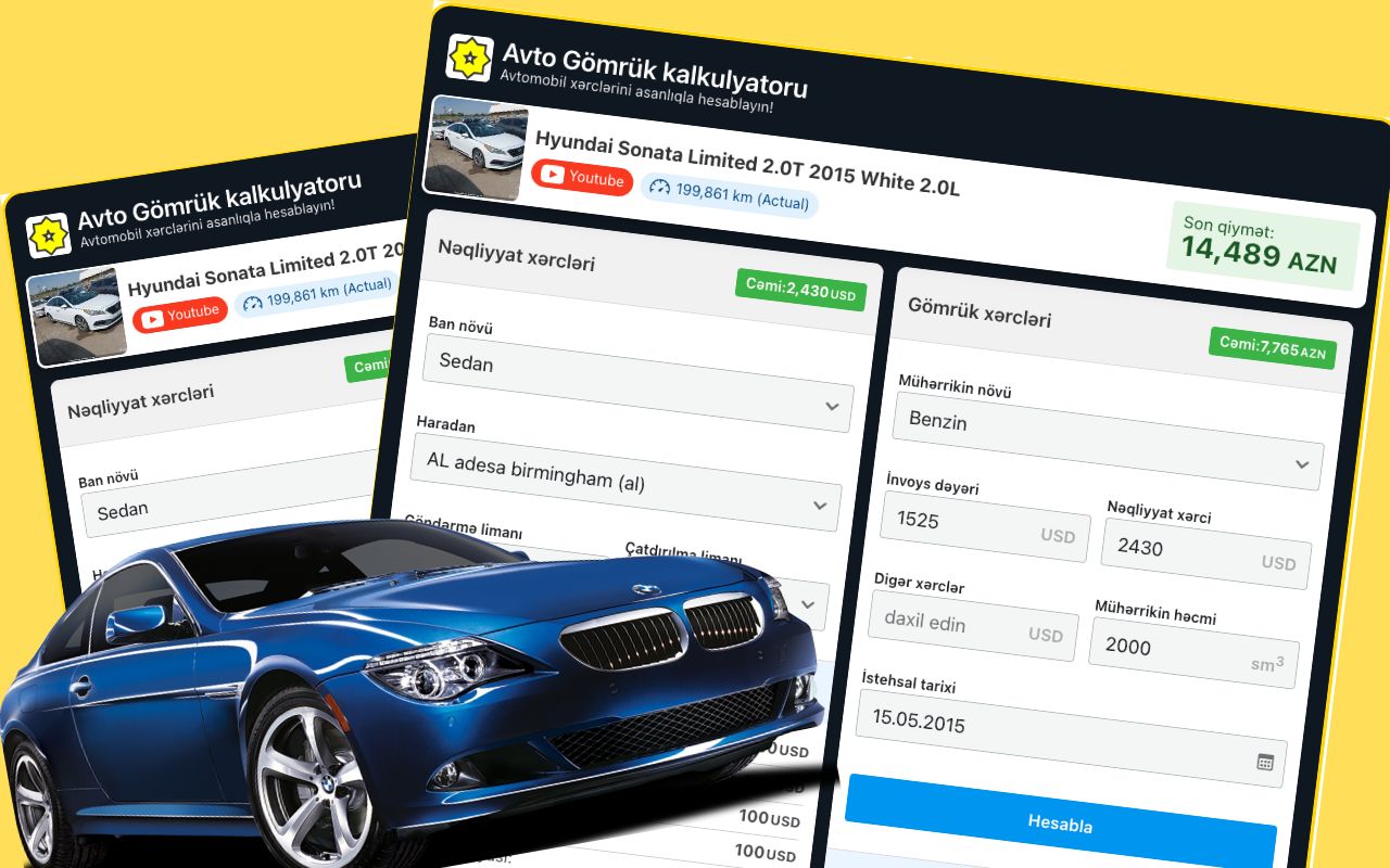 Xaricdən gətirilən avtomobillərin qiymətini asanlıqla özünüz hesablayın!
